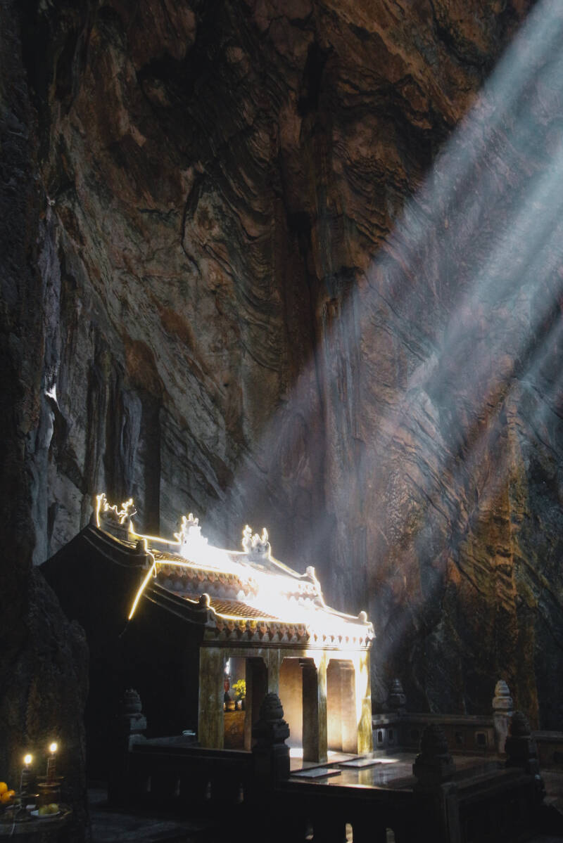 Dies bedeutet übersetzt „Die Fünf Elemente“ und die Felsformation besteht aus 5 Marmor- und Sandsteinbergen. Diese wurden somit nach den 5 Elementen Kim (Metall), Thuy (Wasser), Moc (Wald), Hoa (Feuer) und Tho (Erde) benannt. Die natürliche Höhlen der Felsen wurden über die Zeit zu Anbetungsorten und sind inzwischen mit Buddha Figuren, Pagoden und Tunneln ausgestattet. Der ganze Ort ist faszinierend anzusehen.